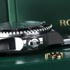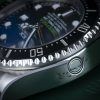 The 60-minute graduated, unidirectional rotatable bezel of the Rolex Deepsea enables divers to precisely and safely monitor their dive and decompression times. It is equipped with a patented black Cerachrom bezel insert manufactured by Rolex in a virtually scratchproof ceramic whose colour is unaffected by ultraviolet rays. The graduation is coated via PVD (Physical Vapour Deposition) with a thin layer of platinum. The sleek black dial features large Chromalight hour markers and hands, filled with luminescent material that emits a long-lasting blue glow for excellent legibility in dark conditions.