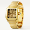 Cartier Santos de Cartier Large Brown Dial 18ct Yellow Gold Automatic Watch WGSA0095. 18ct yellow gold 47.5mm x 39.8mm case and set bezel all on a 18ct yellow gold bracelet and comes complete with an additional brown leather strap. This watch features a brown gradient dial with golden hands and hour numerals, date display at the 6 o’clock position. Water resistant up to 100m and sapphire crystal glass. Calibre 1847 MC automatic movement.